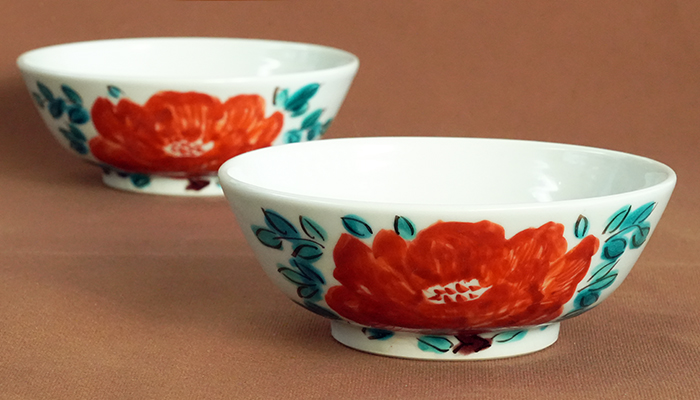 ふんわりと重なる花びらがとても美しいボタンをモチーフにした樋山真弓さんの「色絵牡丹 5寸鉢」