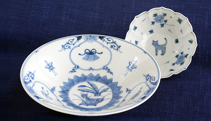 ていねいに描かれた一本一本の線の太さや濃淡でいろいろな表情をうみだすアヤベシオリさんの染付