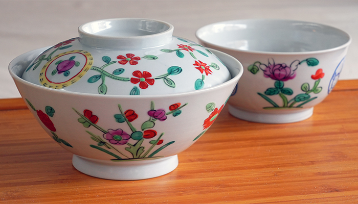 岡本修さんから届いた新作 「草花紋 蓋付碗」と「色絵草花紋 うさぎ 碗」 蓋付は、ちょっと