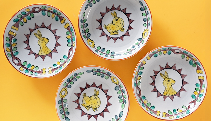 キャラがたったウサギさんがかわいい3.5寸皿 少し深さがあるので、小鉢の感覚で副菜を盛りつけたり