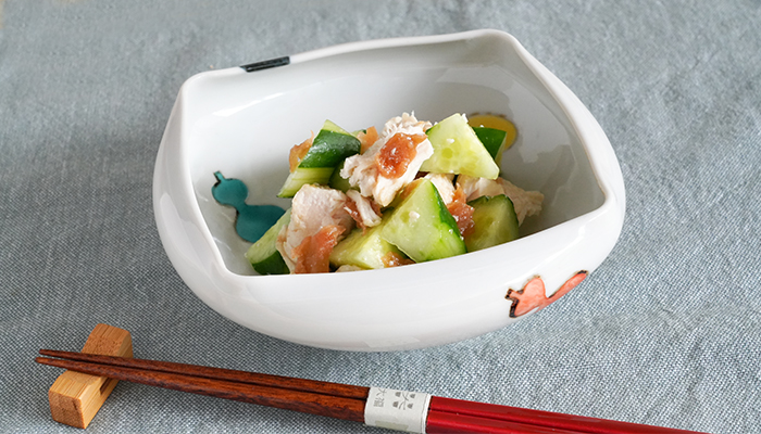 何かと外食が増える季節、さっぱりしたものが食べたくなったので、ささみとキュウリの梅肉和えを