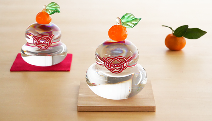 縁起ものです そんな神聖なお供え物をガラスで創った鏡餅 清々しい雰囲気が漂う逸品です
