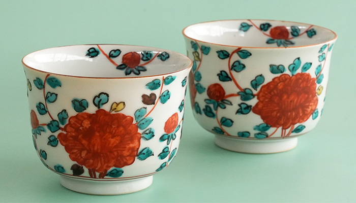 お茶が飲みたい気分 花言葉は「風格」「高貴」とされる牡丹の花を絵柄にした湯呑は山本恭代さんの作
