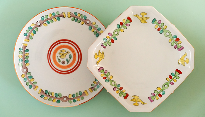 色鮮やかなお花が縁を彩る7寸皿と四方皿 メイン料理を容れたり、パスタやサラダを盛りつけたり